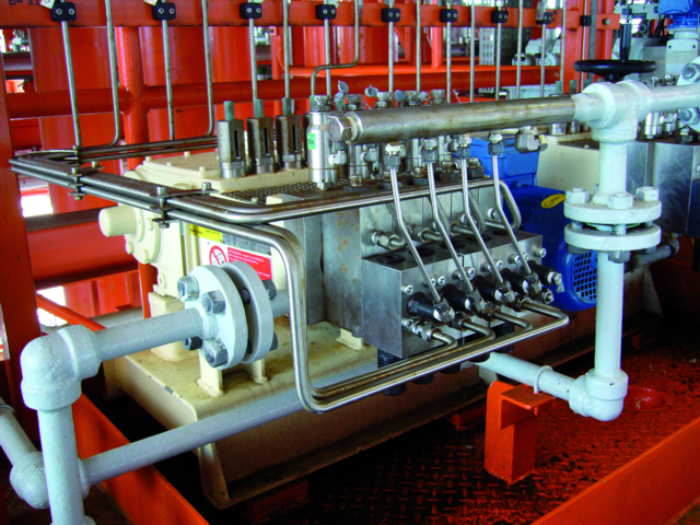These fluid metering pumps maintain a required NPSH below 0.3 bar abs under standard conditions.